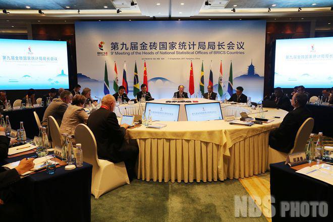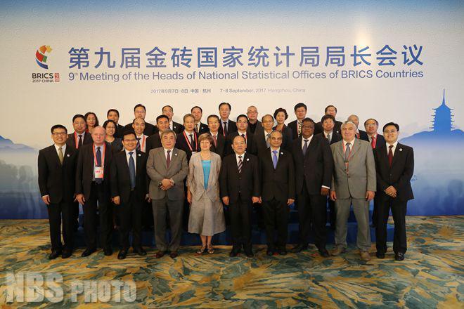 钱江潮起,丹桂飘香。第九届金砖国家统计局局长会议于9月7日在浙江杭州开幕。与会代表重点围绕《金砖国家领导人厦门宣言》和中国国家主席习近平所作的“深化金砖伙伴关系,开辟更加光明未来”重要讲话,就全面落实金砖国家领导人厦门会晤共识,助推五国经济增长和世界经济发展,深化金砖国家统计合作特别是新动能新产业统计监测方面合作进行了深入探讨,共同描绘了巩固和深化金砖国家统计合作的美好前景。中国国家统计局局长宁吉喆致辞并作主旨发言,中国浙江省常务副省长冯飞致辞,巴西国家地理与统计局局长代表吴大猷,俄罗斯统计局副局长伊丽娜?马萨科娃,印度统计局局长代表普拉文?斯里瓦斯塔瓦,南非统计局局长代表阿鲁斯瓦内森?奈杜分别致辞并发言。中国工业和信息化部副部长陈肇雄、国务院发展研究中心副主任隆国强、中国投资有限责任公司总经理屠光绍,联合国统计司司长斯特芬?施万斯特和金砖国家新开发银行副行长保罗?巴蒂斯塔参加会议并发言。中国国家统计局副局长鲜祖德,中国国家统计局总经济师盛来运出席会议。闭门和开门会前,宁吉喆、冯飞会见了与会外宾代表和部分中方代表,对他们的到来表示诚挚欢迎。